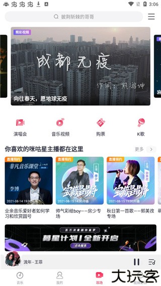 进入直播区可看演出、K歌互动与门票服务。
