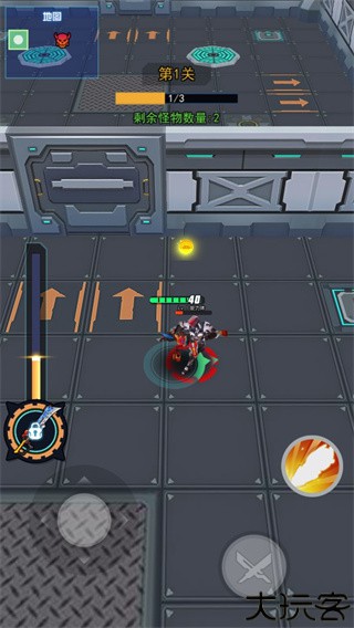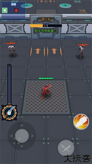 3、游戏的操作非常的简单,左边是控制铠甲的方向,右边则是攻击了。