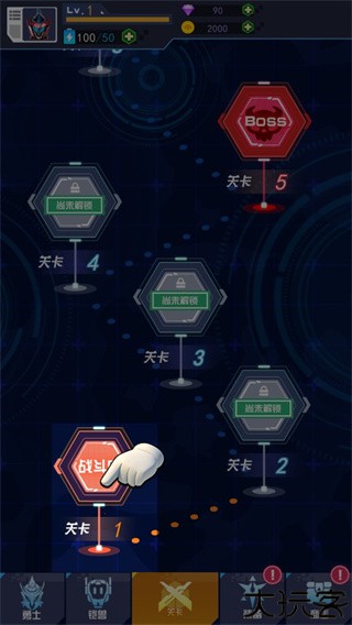 1、首先进入铠甲勇士黎明之战游戏,点击关卡。