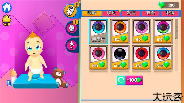 1、打开游戏后,点击左上角房屋,随意更换宝宝的眼睛、发色和发型等外观。