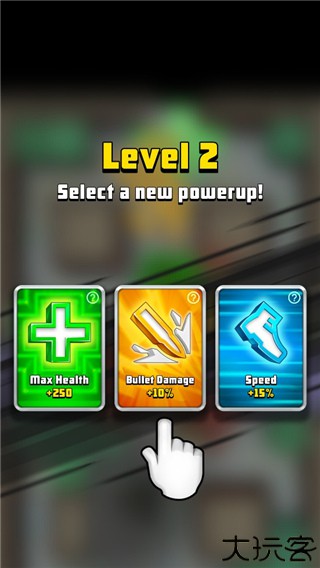 6、击杀一定数量的敌人后会升级,升级的时候可以选择新的技能加成。