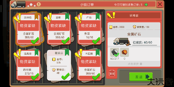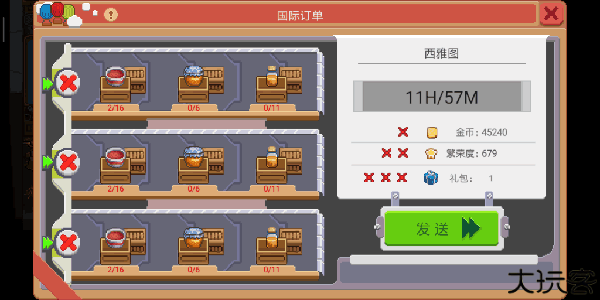 有六种订单,分为普通订单和特殊订单。每一个订单所需的物品都是不同的。