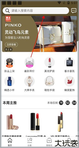 1、打开进入首界面,就能够去搜索自己想要的商品。
