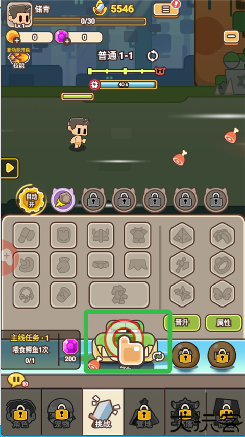 2、点击鳄鱼触发开箱,获取资源、装备或特殊道具,用于角色养成。
