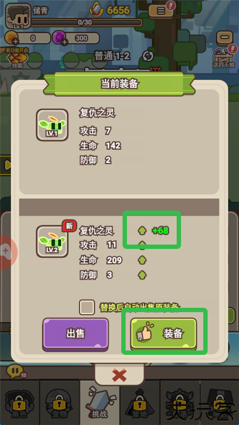 4、获得高品质装备后可一键替换原件,属性对比清晰,升级更便捷。