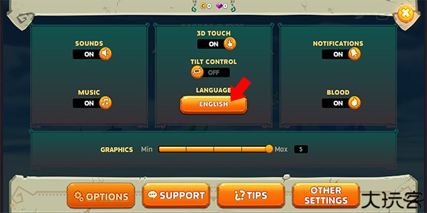 2、在设置界面中找到LANGUAGE,点击下方的语言设置按钮。