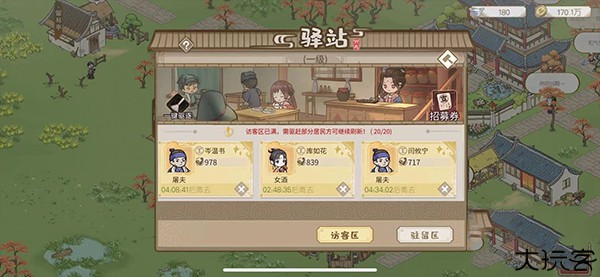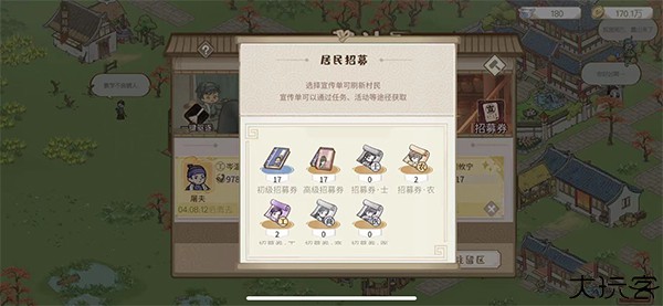 2、村民基本都是招募来的,玩家们可以在驿站内招募,这个招募需要招募券,可以解锁初级招募方式,如果可以完成更多的任务,则是可以获取更多的出击招募券,虽然获取到的居民品质一般,但是前期应个急是很不错的。