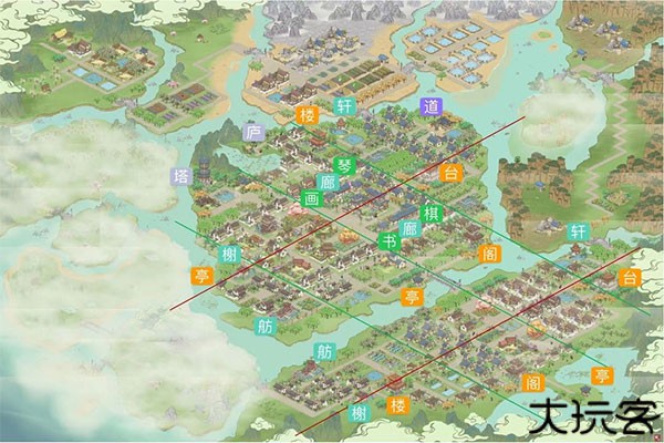 ④塔山区:高塔依山傍水,下有医馆药铺,可以登高远眺,亦可湖畔观荷,最宜休养身心。