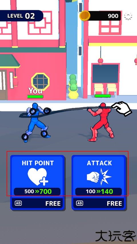 4、如果想玩家要加血量和攻击力,每次关卡开始前可以花费金币进行升级。