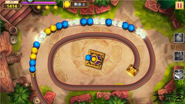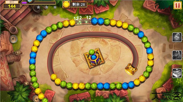 3、玩家将会控制炮台去发射弹珠,消除粉碎三颗相同颜色的珠子以此来获得分数;
