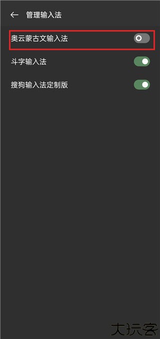 2、在输入法管理界面切换至奥云输入法作为当前键盘。