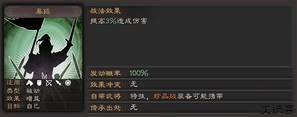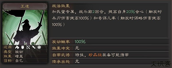和氏璧专属,战斗前两回合自带20%暴击率,极其稀有难得一见。