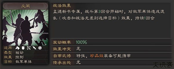 孟德新书专属,第三回合随机令一名敌军陷入混乱状态。
