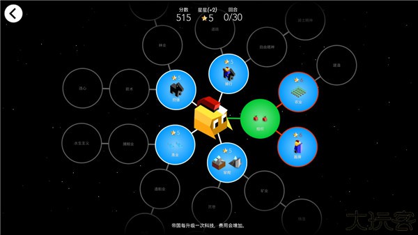 使用星星点亮技能树,逐步解锁单位、资源方式与特殊任务。