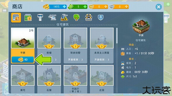 点击左下购物车图标进入,可选购建筑与装饰。