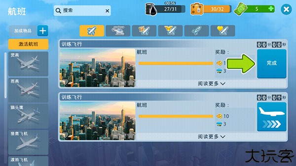 点击地球按钮进入飞行界面,完成任务可得奖励。