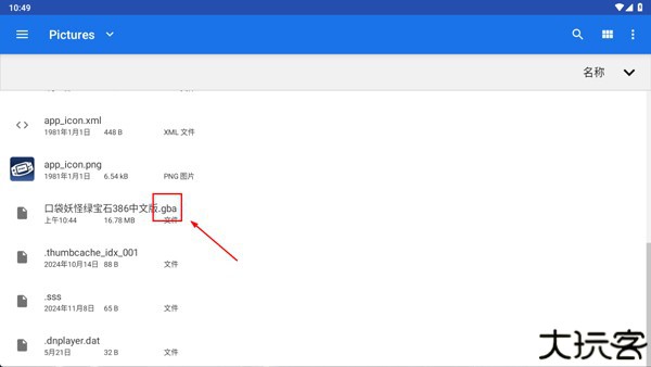 2、找到手机储存中已下载好的.gba格式游戏文件并选中即可加载。