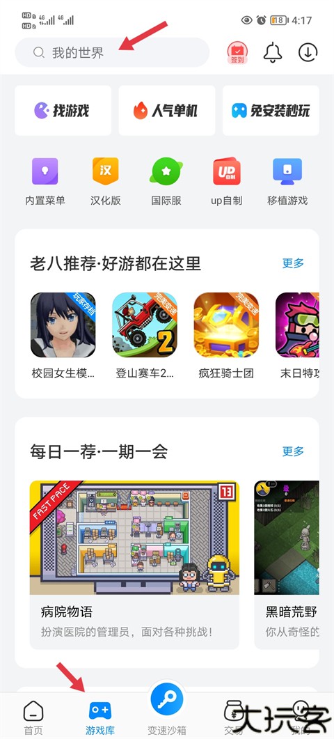 打开应用,在顶部输入游戏名,快速查找目标资源。