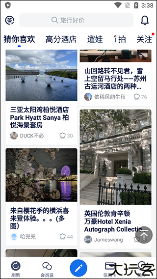 3、同时看能看到其他用户分享的一些酒店和旅游景点。