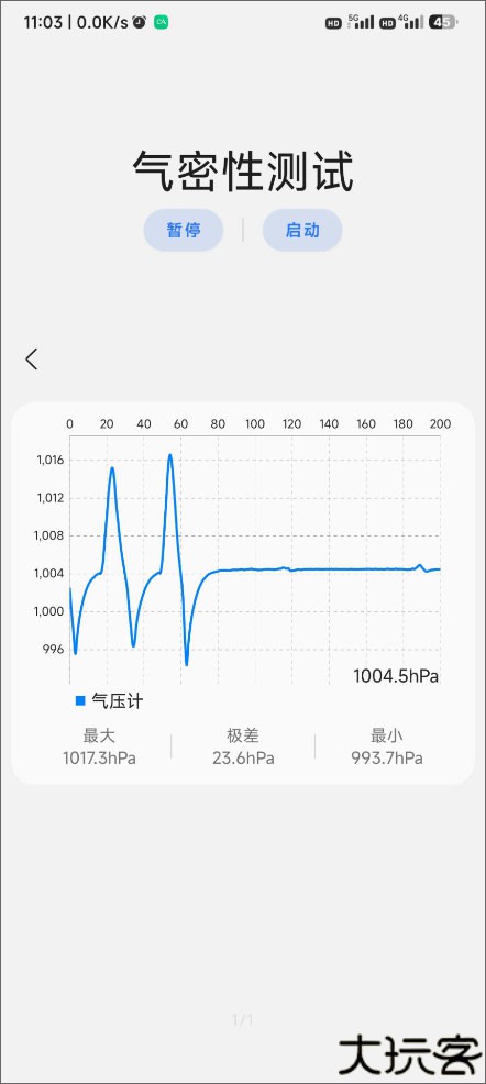 支持暂停/启动气密性测试,自动计算并显示最大、最小压力。