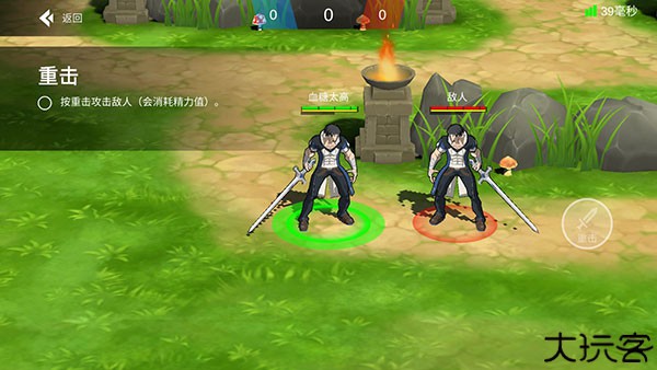 1、点击轻击或重击可打出不同强度招式,均会消耗角色精力。