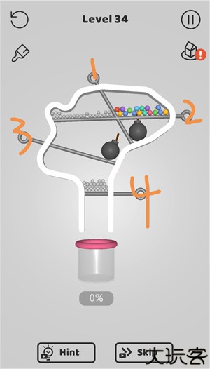 别针大师中文版是闯关类益智休闲手游,玩法非常简单,几乎动动手指就能完成所有操作,轻松又上头。在游戏中,玩家需要运用一点物理小常识,把从上方掉落的小球顺利收集到一起。透过移动别针的方式,避开各种障碍和陷阱,尽可能别让小球在中途掉落或损失。只要能把全部小球安全送到瓶子底部,就算通关成功。别针大师中文版使用清新可爱的卡通画风,看着就很治愈。而且关卡设计非常丰富,虽然操作看起来很简单,但越玩越有挑战,稍不留神就可能翻车,特别考验你的观察力和动脑能力。