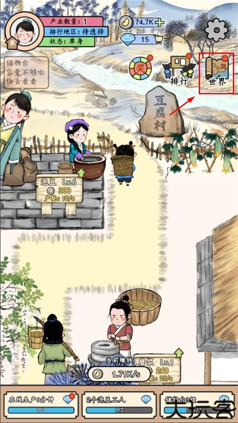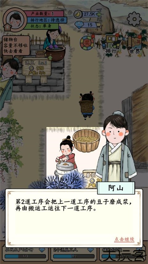 1、当玩家过完剧新手情之后,可以解锁第一道工序,也就是泡豆,通过将豆子洗净、泡软,才能制作下一道工序。