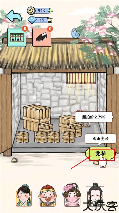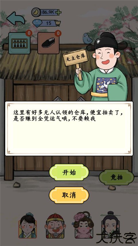 3、官府上有很多无人认领的仓库,玩家可以通过叫价拍卖以获得。