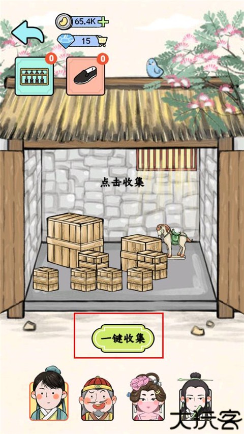 5、当拍卖成功后,点击一键收集,玩家可以出售仓库里的物品获得铜钱。