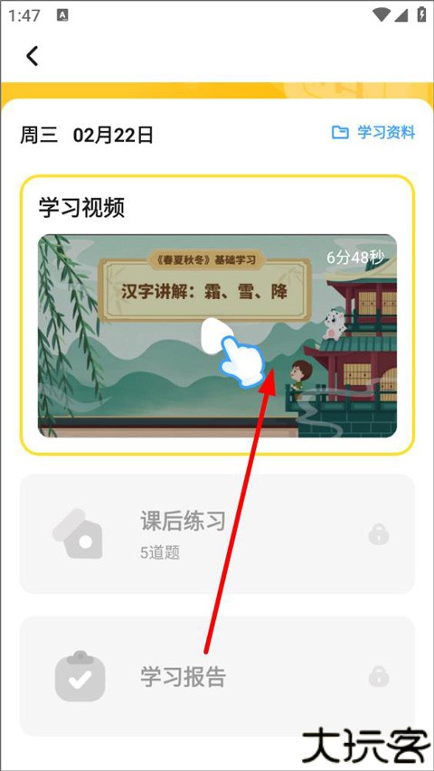 6、用户在学习时可结合课程视频一起学习,学习完成后,用户还需完成课后习题和学习报告,完成当日的学习任务即可进行打卡。