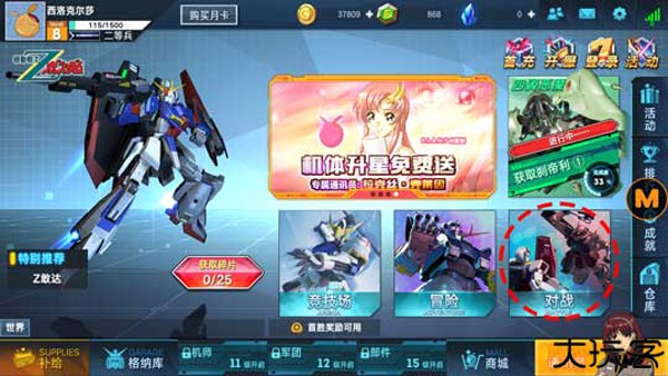 1、玩家在主页面的选择【对战】后,就能够进入经典战斗对战模式界面。