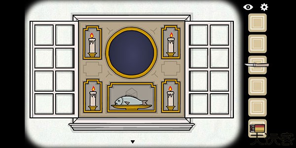6、打开另一面墙上的窗,用小刀划开画,就会出现下面的这个东西,是整个游戏的中心线。