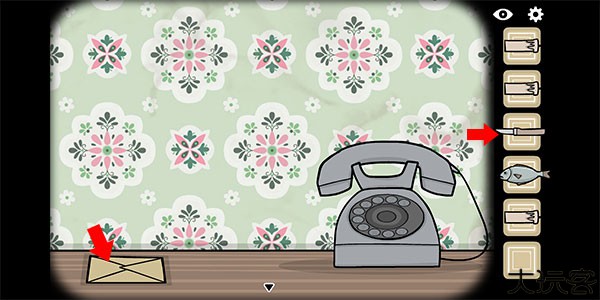 4、用小刀划开有电话的桌子上放着的信封,打开里面的纸,纸上有一行“enlighten me”。