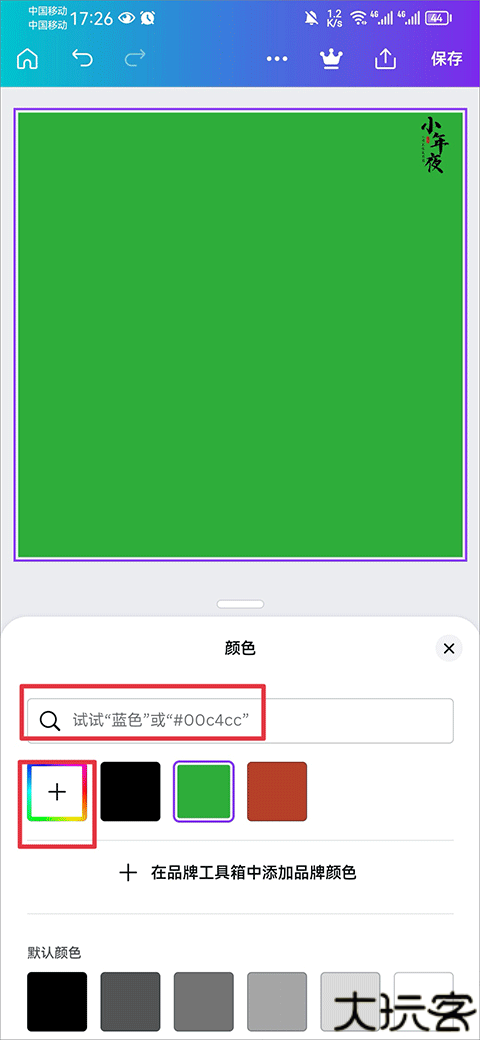 2、然后在颜色中搜索你要的颜色名称,或者点击+号自行选择颜色。