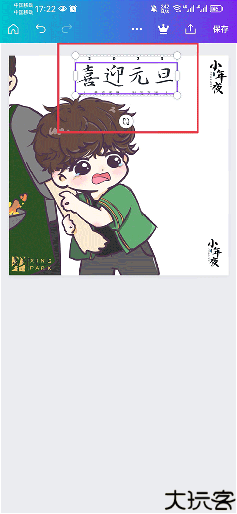 3、点击后就可以在图片中看到该文字了,然后点击文字可以调节大小和移动位置。