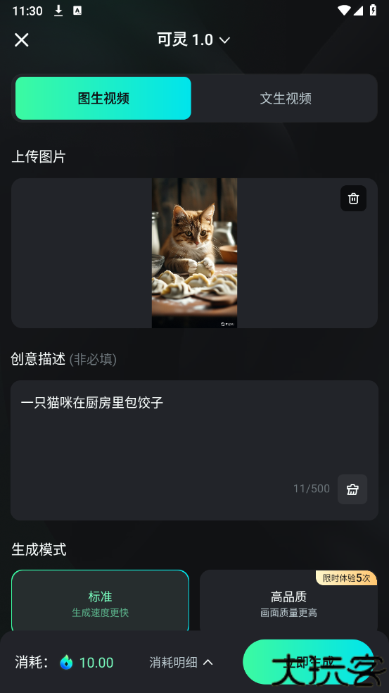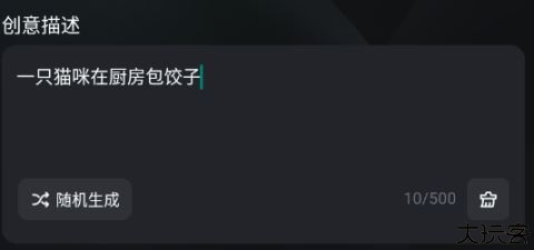 描述如“厨房里的猫咪包饺子”,用于生成画面内容。