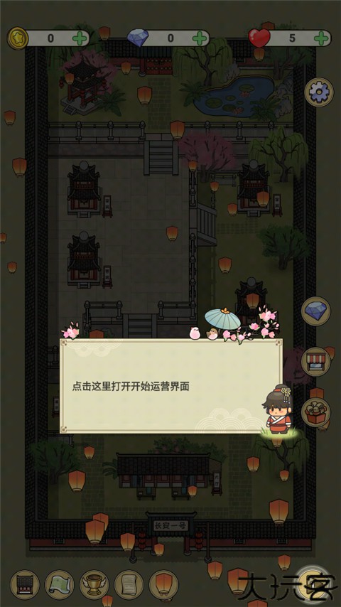 2、游戏开始后有新手教程,玩家根据指示点击右下角,以打开运营界面。