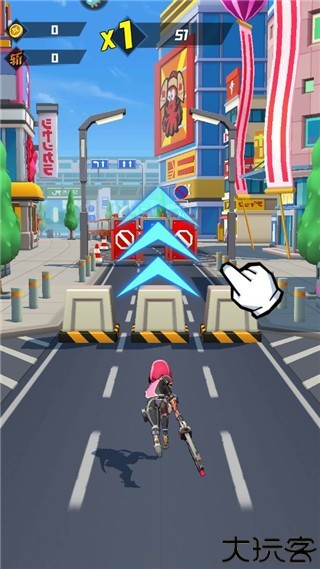 4、只需要滑动屏幕,来控制方向。可以让角色向左、向右移动,跳跃躲避障碍物。