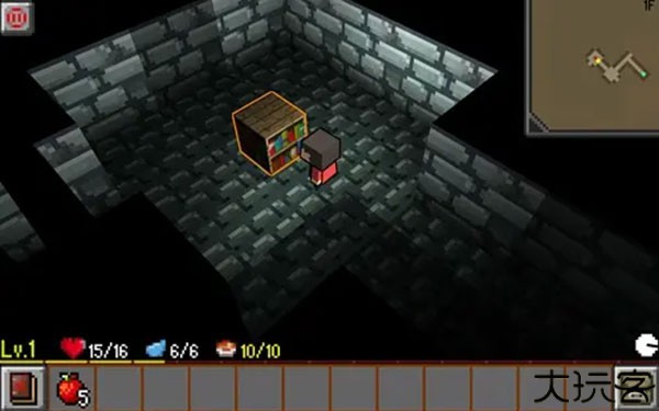 6、地牢房间内还会有些道具箱,里面可能有补血药,或是装备,或是一次性物品等,玩家可以攻击木箱来收集道具。