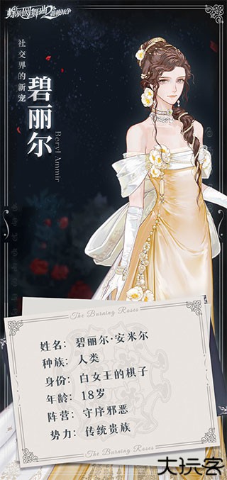 身为安米尔伯爵千金,举止端庄优雅,教养良好。她是舞池中最耀眼的存在,忠诚献于王室。