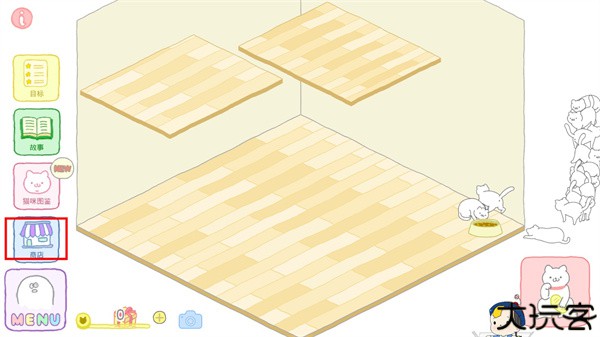 3、可以购买猫抓板,猫塔等等,也可以买新的房间哦。