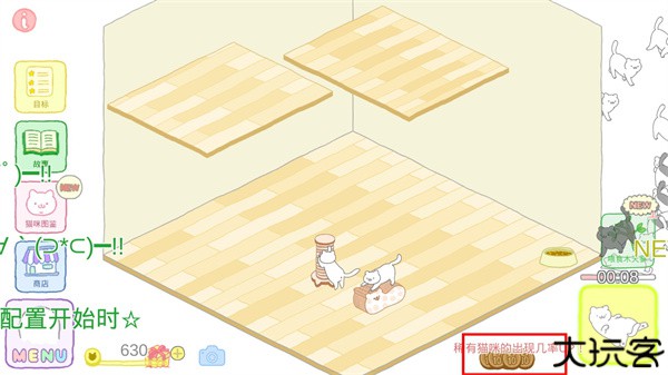 4、收集稀有猫,出现的猫咪品种会受到道具的影响哦。
