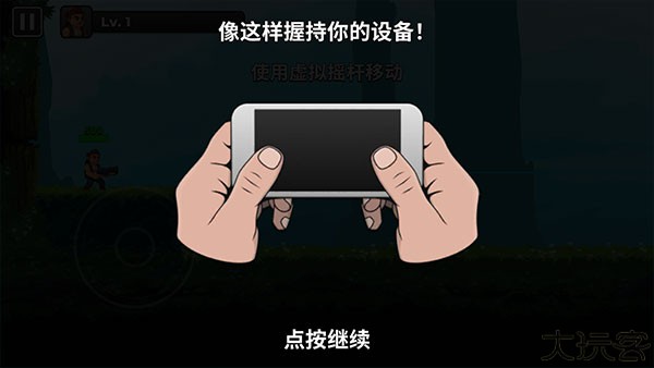 3、点击左上角可以暂停游戏,使用左下角的虚拟摇杆可以控制人物移动和前进。