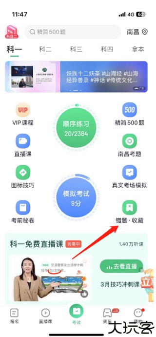 首先我们打开驾考一点通app,在考试界面,点击页面上的错题收藏。