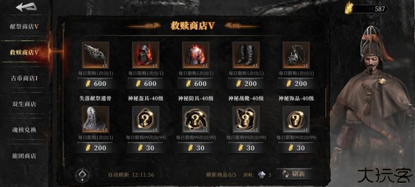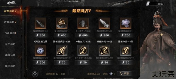 6、不论是献祭还是救赎,透过累积获得的献祭石或救赎石后可寻找商人亚伯罕,进入【黑市】以兑换神秘装备