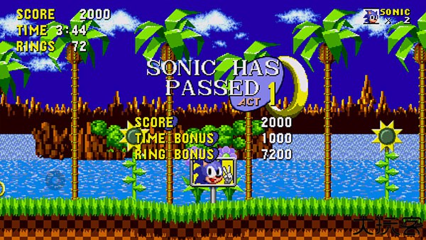 6、一直向前,直到第一关结束,带领自己的索尼克继续冒险。