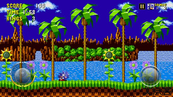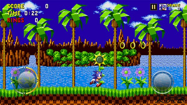 1、在本站下载安装好后,进入后左下角按钮左右滑动控制索尼克移动向左向右跑。