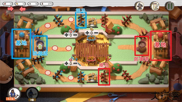 拒马:游戏开始时上下路分别自带三个拒马,拒马不可建造,不可修理。