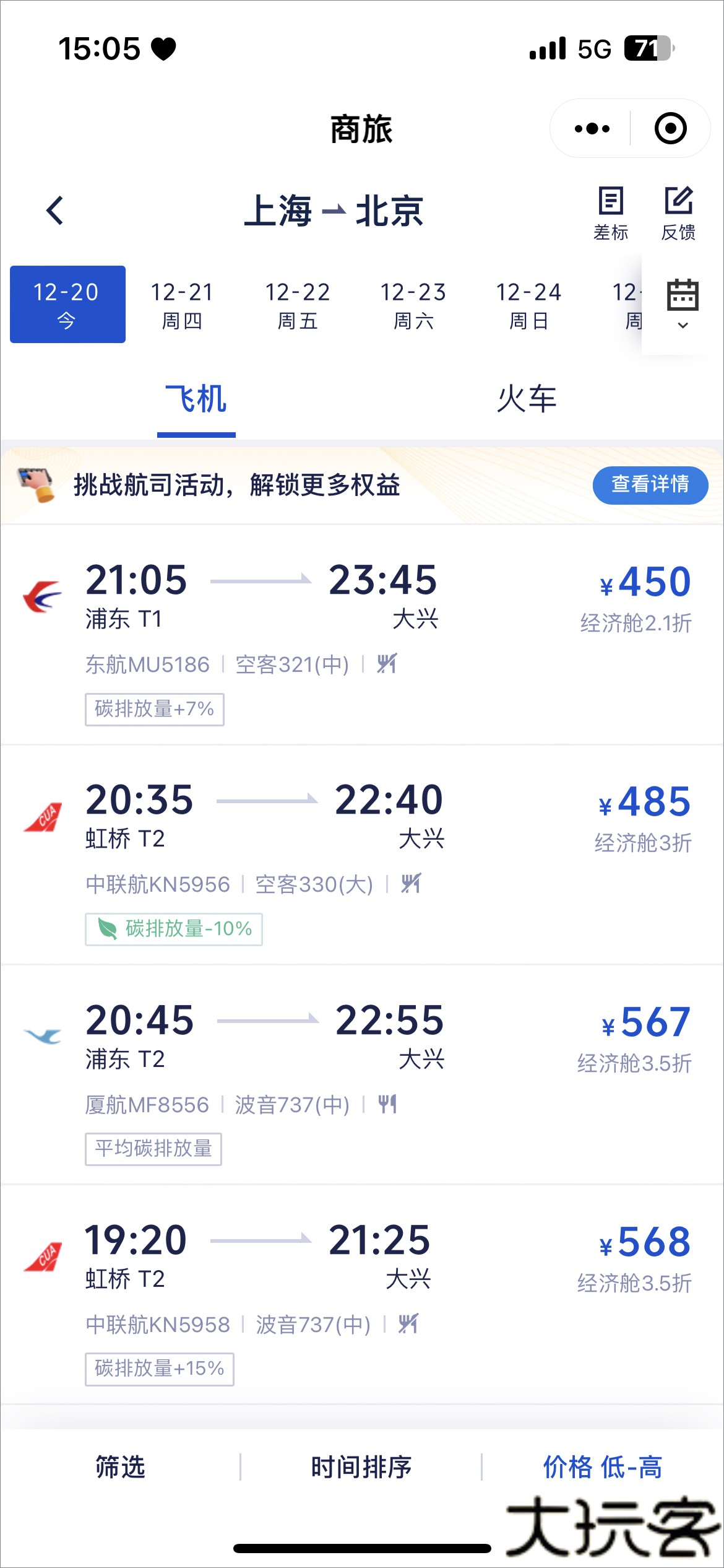 3、随后用户选择自己的出行时间及航班。