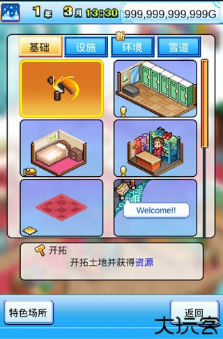 4、需要利用开拓来进行场地扩增,扩增后利用获取的资源来研究更多的娱乐设施。
